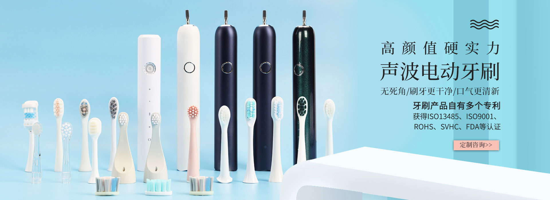 獲得ISO13485、ISO9001、ROHS、SVHC、FDA等認(rèn)證;從牙刷美學(xué)、口腔清潔效果設(shè)計(jì)出發(fā),創(chuàng)新科技、自主研發(fā)和提供更優(yōu)秀的解決方案,給客戶帶來高品質(zhì)的個(gè)人口腔健康護(hù)理產(chǎn)品與服務(wù)。